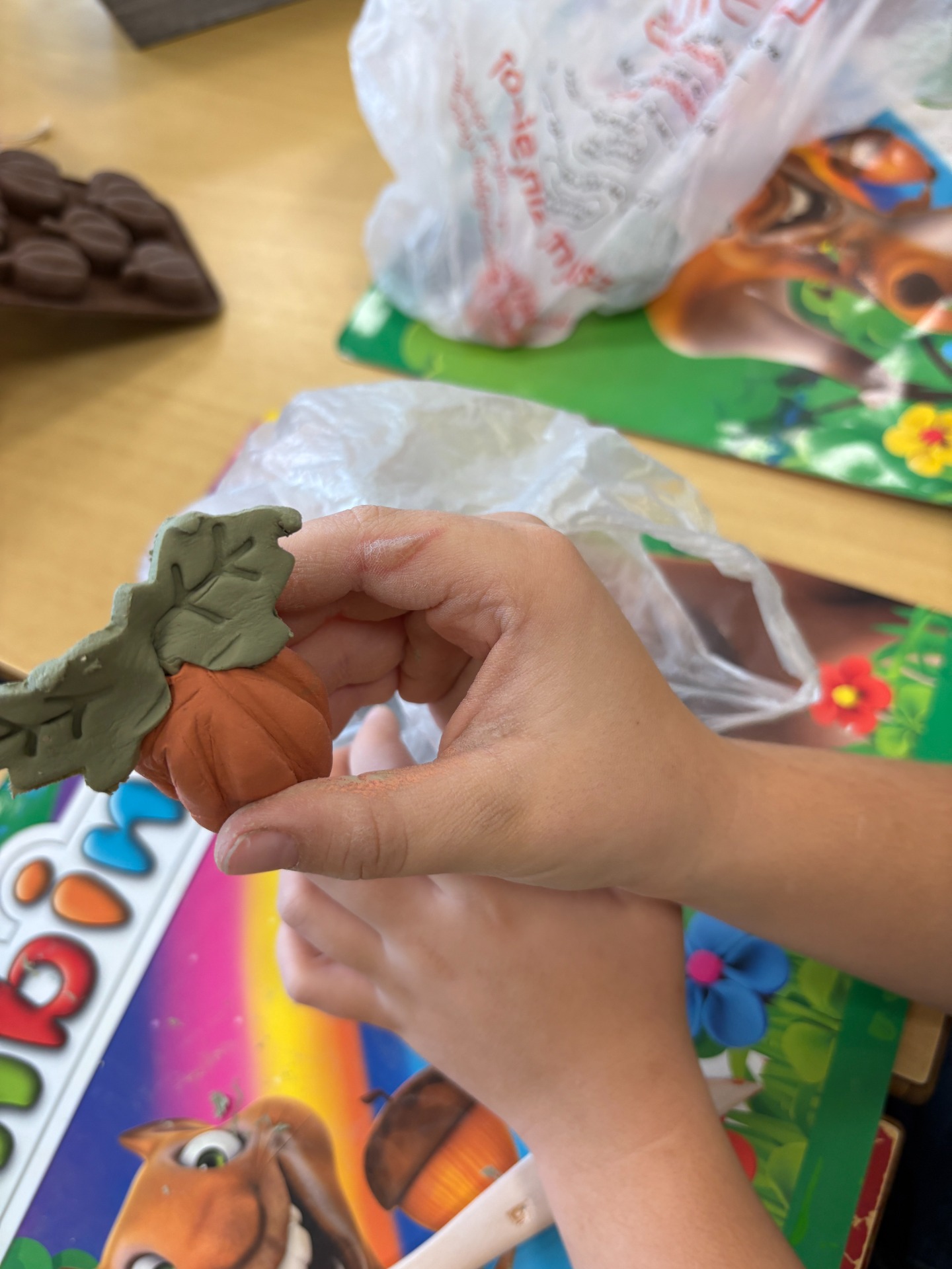 i obserwowały, jak zmienia kształt. Następnie każdy uczeń otrzymał kawałek gliny i mógł samodzielnie ulepić swoją pracę. Powstały różne wspaniałe dzieła: dynie, miseczki, zwierzątka, różnego rodzaku figurki. Uczniowie pracowali z dużym zaangażowaniem