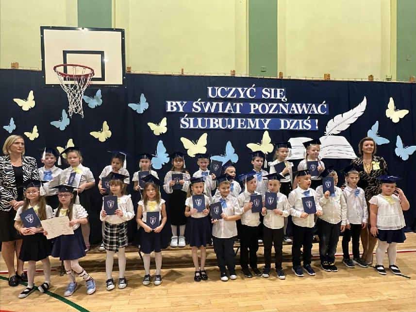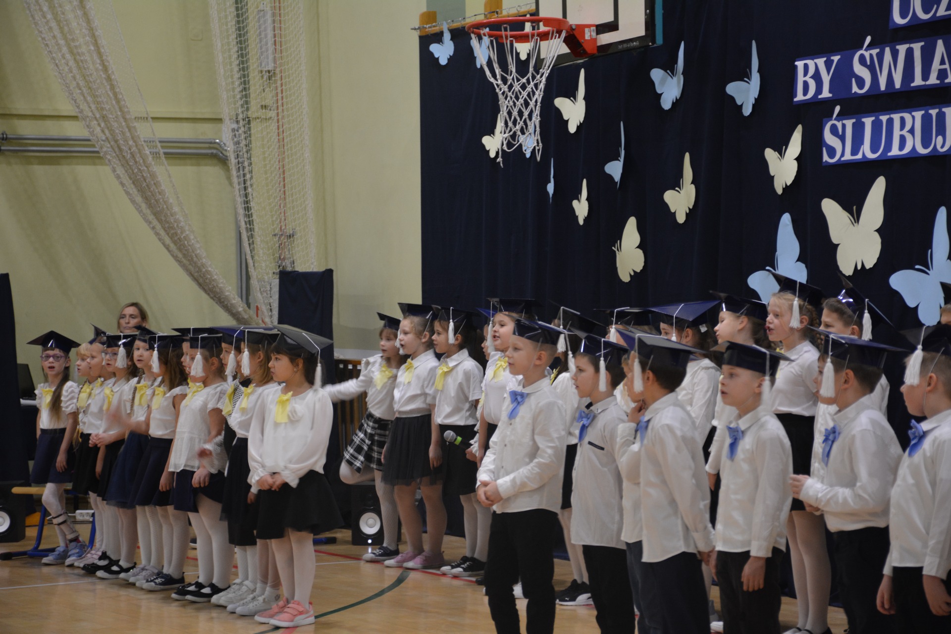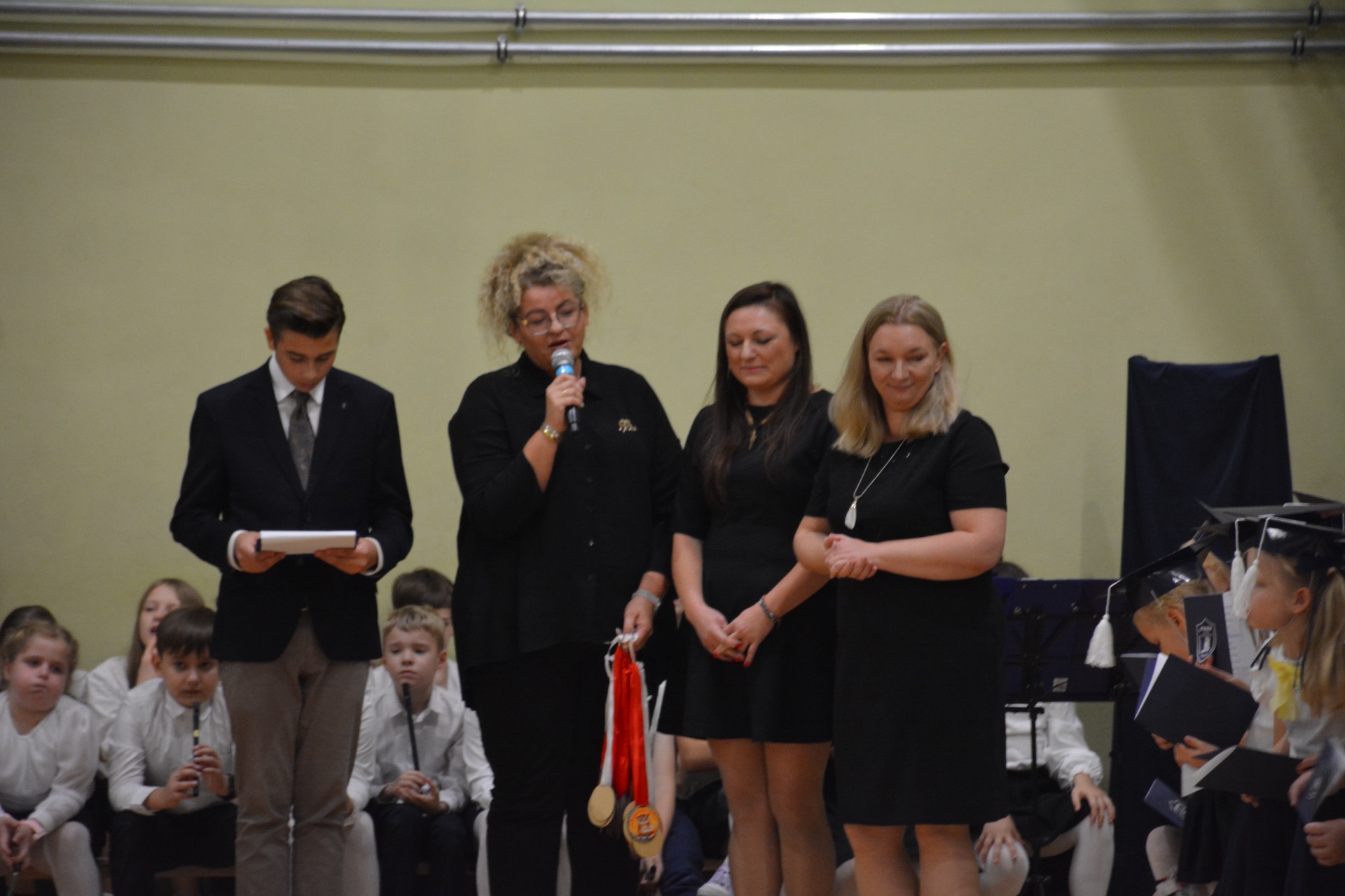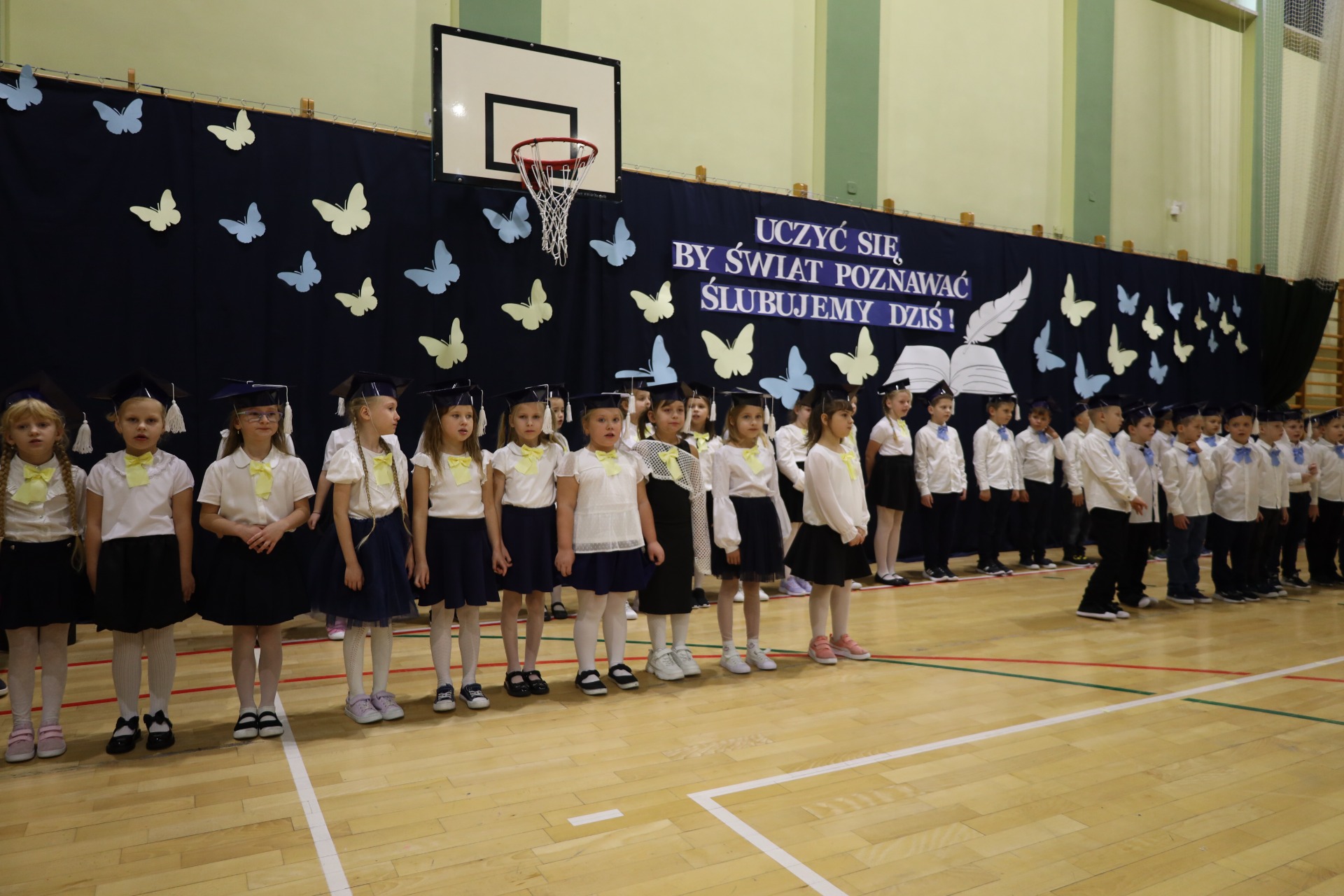 Pierwszoklasiści przedstawili piękny program artystyczny, w którym nie zabrakło piosenek, wierszy i wzruszających momentów. Występ uświetnili również uczniowie klas drugich – recytacją i śpiewem oraz grą na flażoletach w wykonaniu zespołu Fifulki. Za swój występ wszyscy artyści zostali nagrodzeni gromkimi brawami.