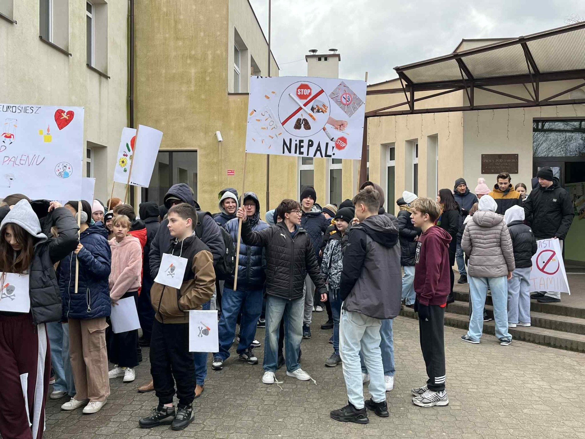 W związku z obchodami Światowego Dnia Rzucania Palenia w dniu 20 listopada 2025 r. Szkoła Podstawowa im. Marszałka J. Piłsudskiego w Rogowie wraz z Powiatową Stacją Sanitarno-Epidemiologiczną w Brzezinach zorganizowała happening pod hasłem „NIEpaleNIE jest MODNE”.