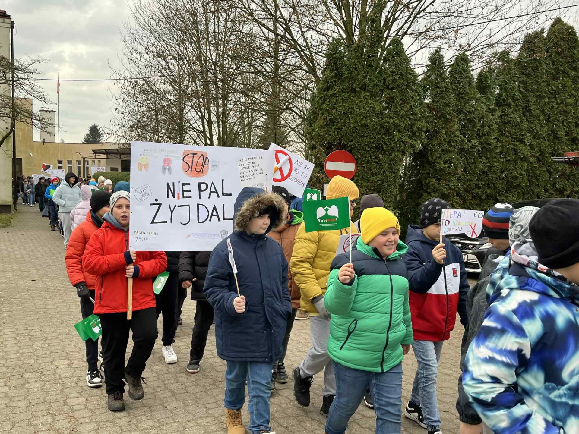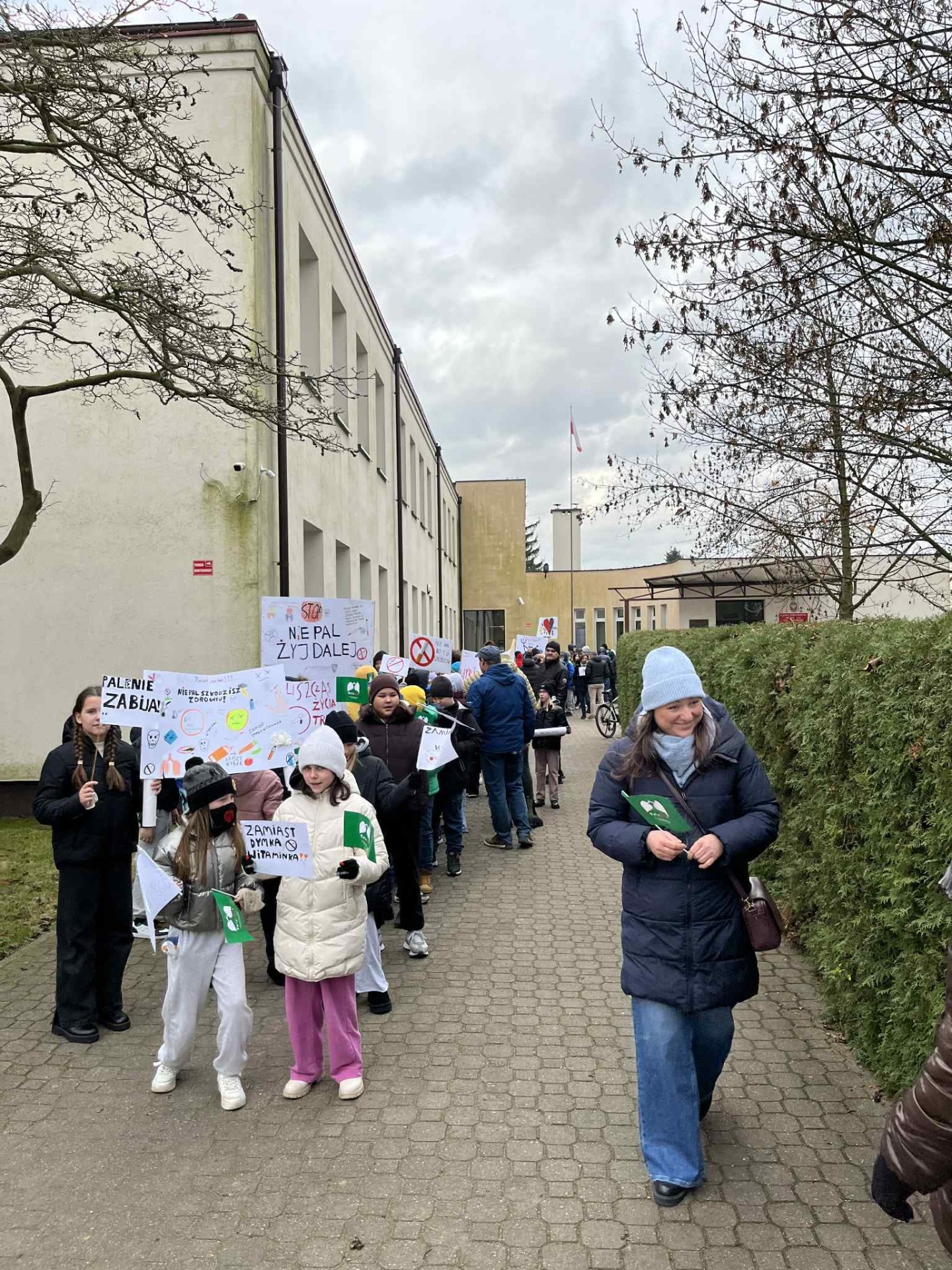 Następnie uczniowie wraz z nauczycielami wyruszyli ulicami Rogowa, aktywnie propagować życie bez papierosa. Uczniowie przygotowali transparenty i okrzyki antynikotynowe.