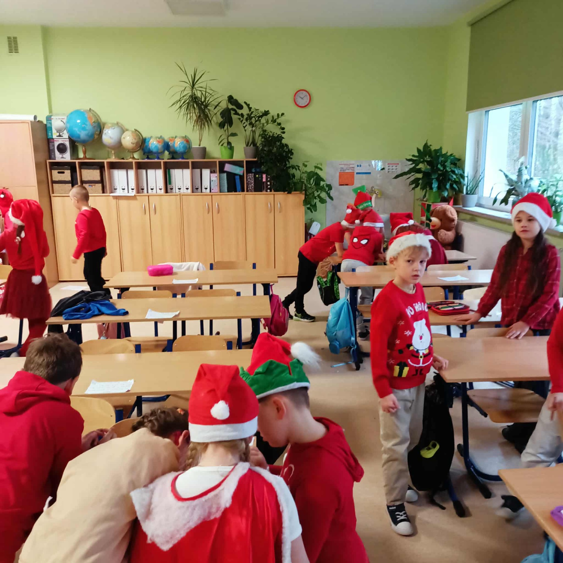 5 grudnia w naszej szkole panowała wyjątkowa, świąteczna atmosfera. Od rana korytarze wypełniły się dziećmi przebranymi za Mikołajów lub ubranymi w czerwone stroje z czapkami świętego Mikołaja. Kolor czerwony zdecydowanie królował tego dnia!