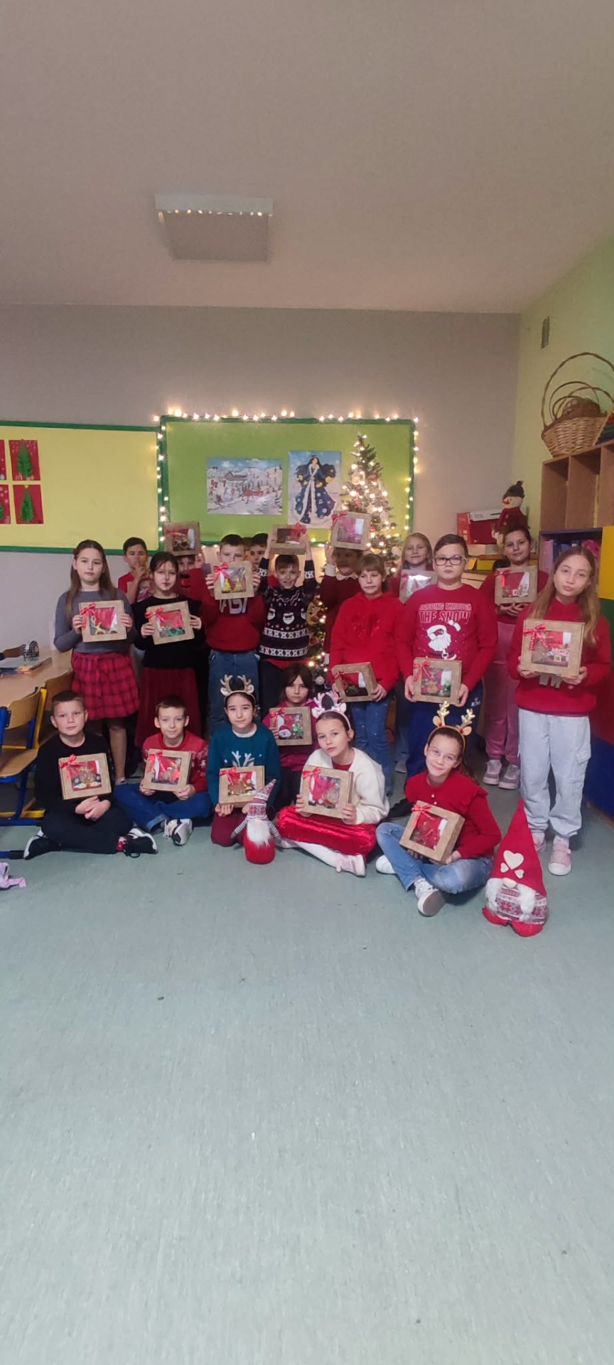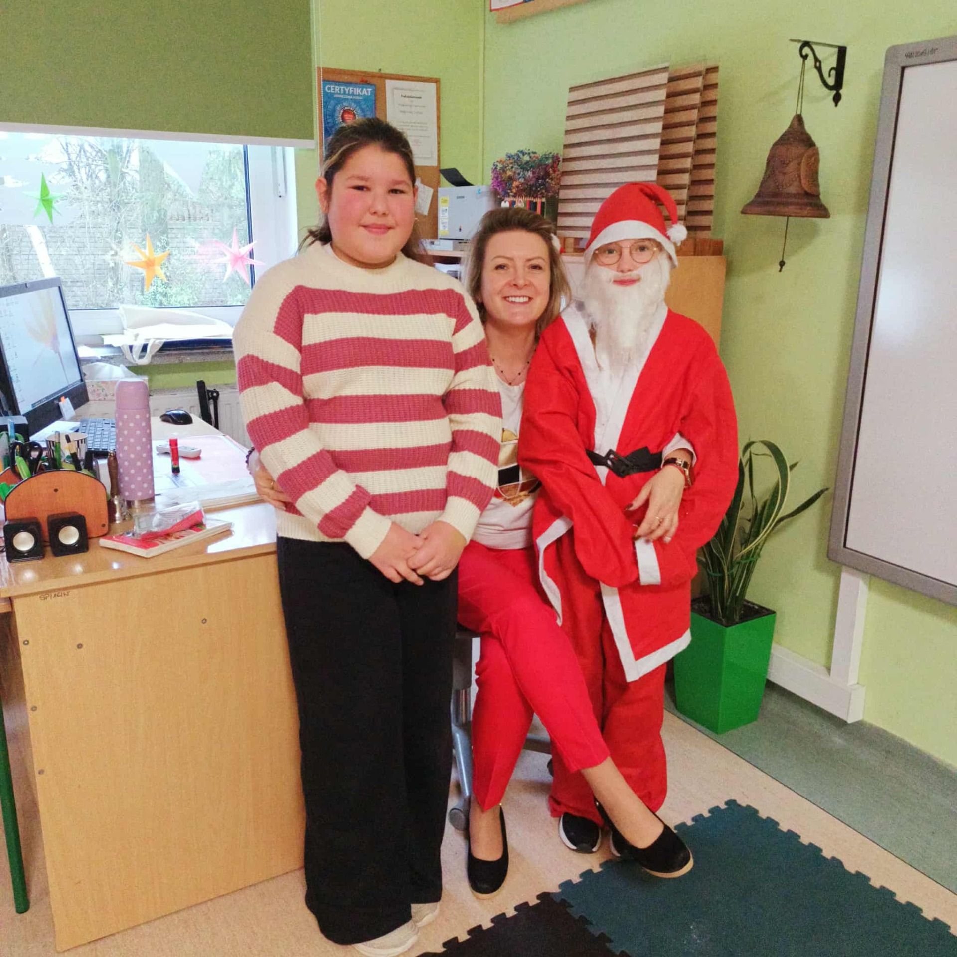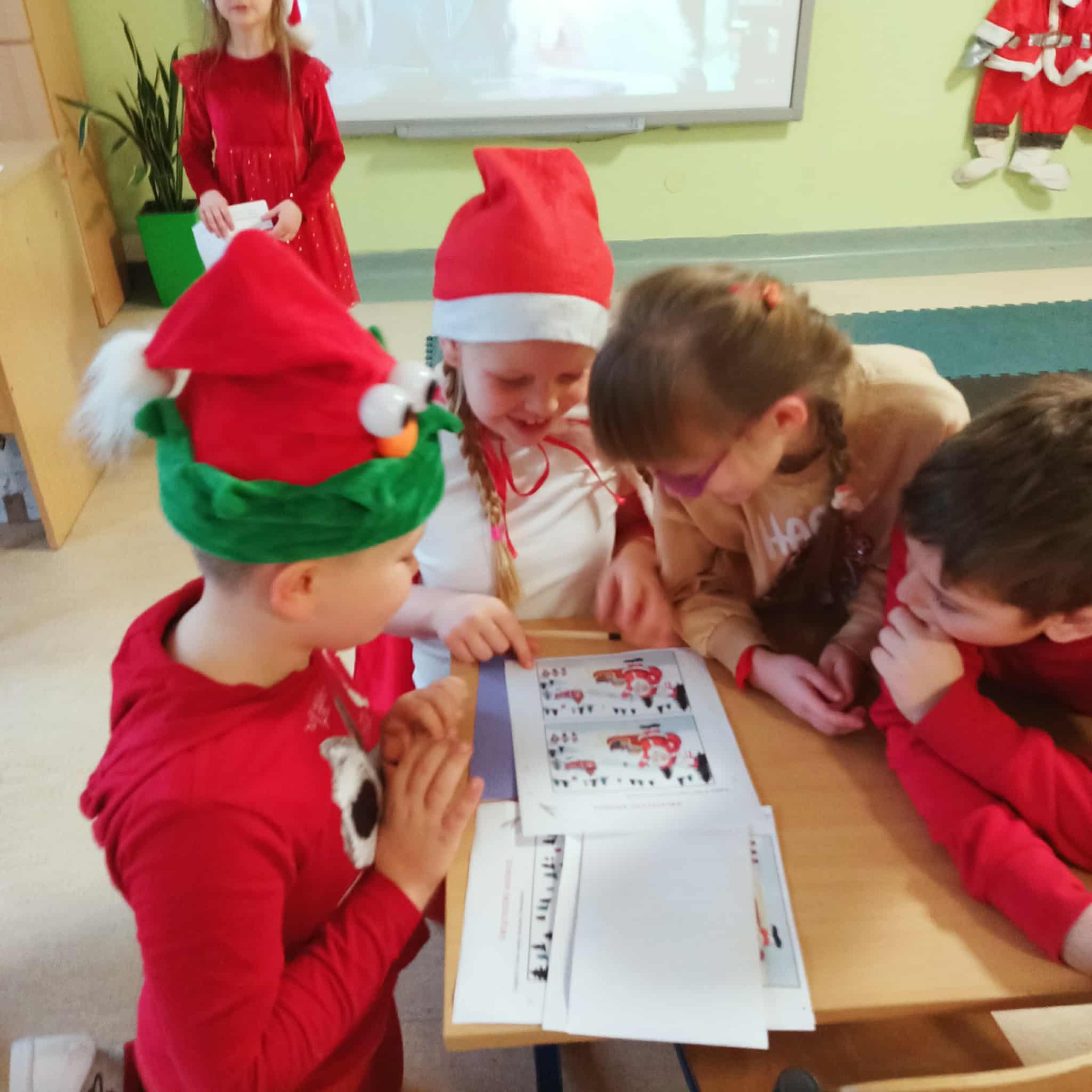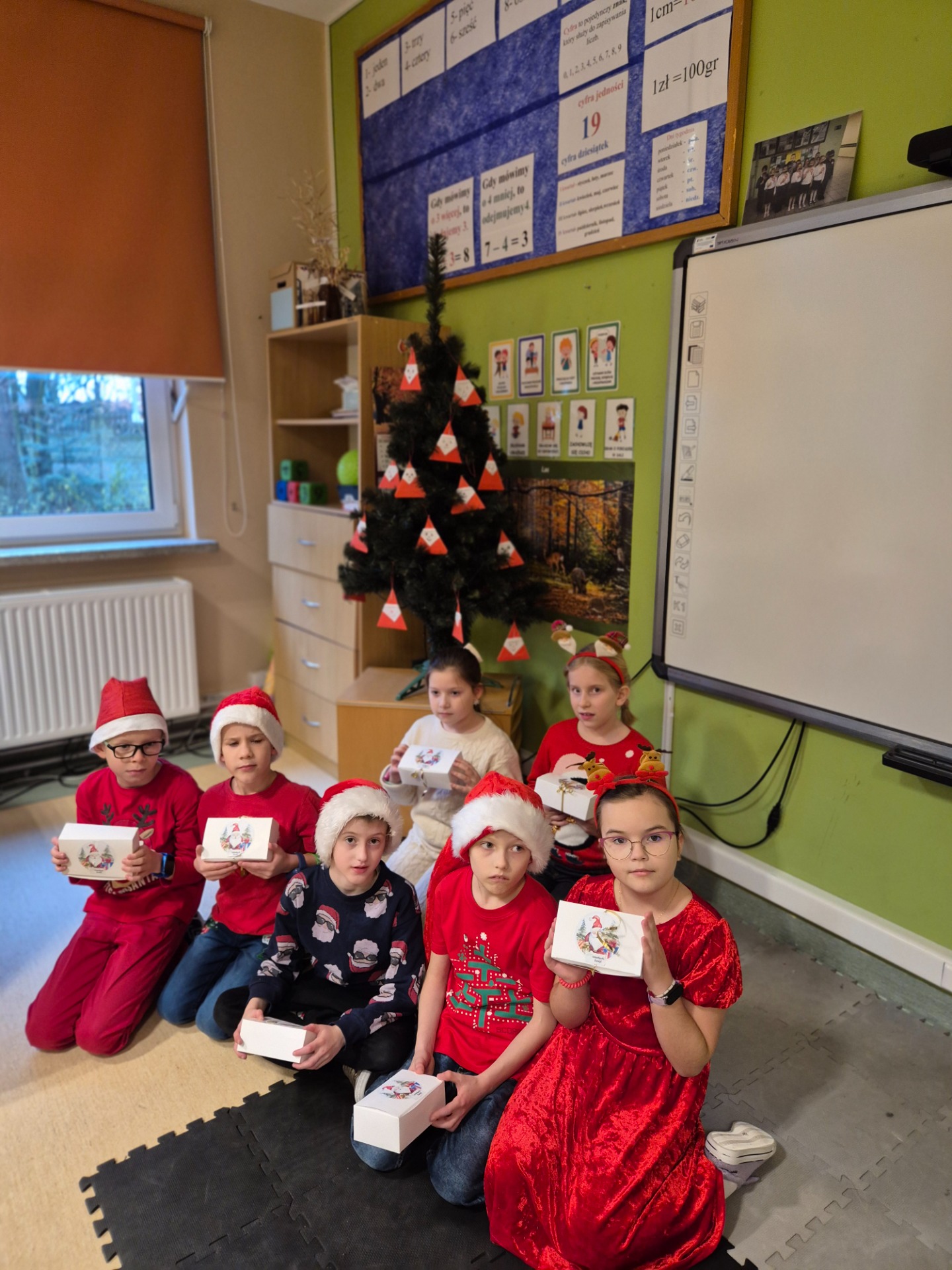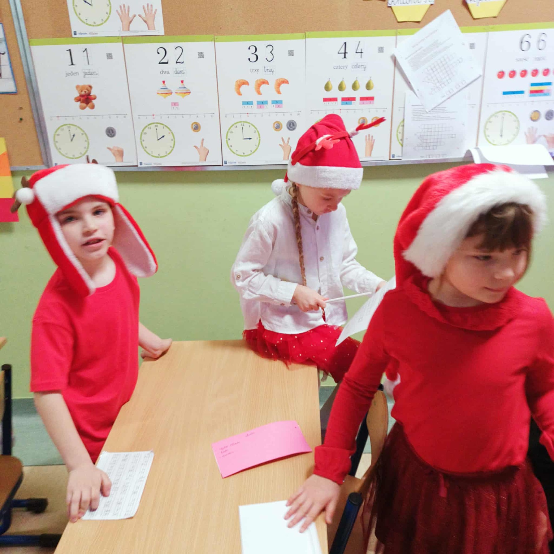 Klasa 1b rozpoczęła świętowanie od wspólnego ubierania choinki. Następnie uczniowie obejrzeli film przesłany specjalnie dla nich przez świętego Mikołaja. Kolejną atrakcją była gra Escape Room, w której dzieci, pracując w grupach, musiały rozwiązać świąteczne zagadki. Drużyna, która jako pierwsza zdobyła kod, otwierała drzwi tajemniczego pokoju. Na zakończenie na wszystkich czekały przepyszne, pachnące babeczki.